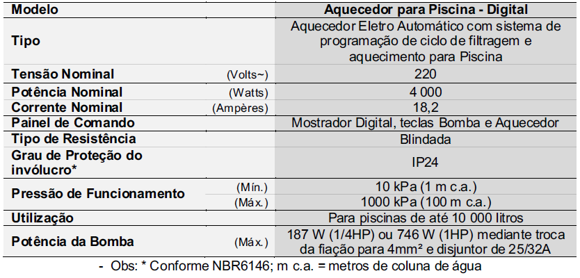 Para piscinas com mais de 10.000 litros, instalação conjugada com Aquecedor Digital ou Compacto.