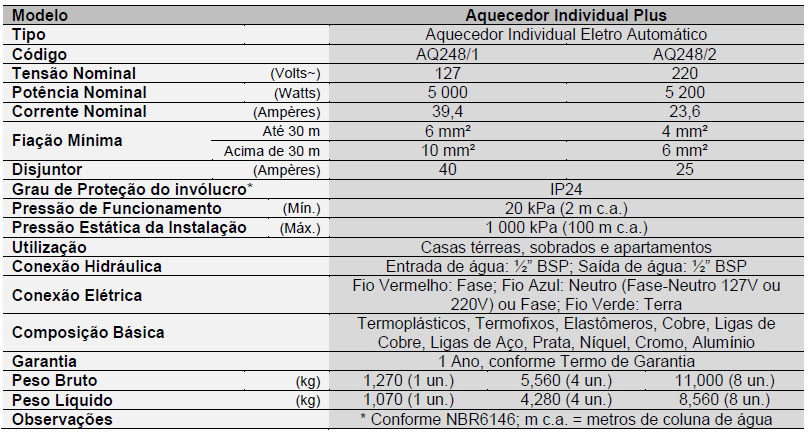 O Aquecedor Individual 4 Temperaturas é indicado para instalações hidráulicas de Baixa e Alta Pressão, suportando 100 metros de coluna de água (m c.a.).
