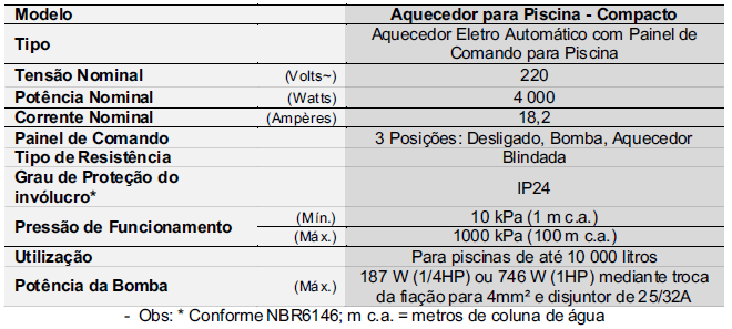 Para piscinas com mais de 10.000 litros, instalação conjugada com Aquecedor Digital ou Compacto.