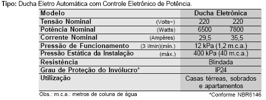 o exclusivo Controle Eletrônico de Potência1), que permite regular a temperatura do banho de
