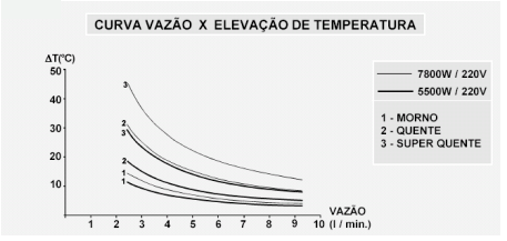 opções: Frio; Morno; Quente; Super Quente é possível atingir a temperatura ideal de banho e ainda