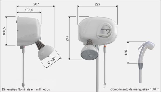 (braço) de interligação. As Duchas Potenza dispensam este acessório, obrigatório na maioria das