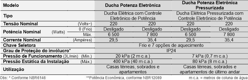 duchas e chuveiros elétricos.